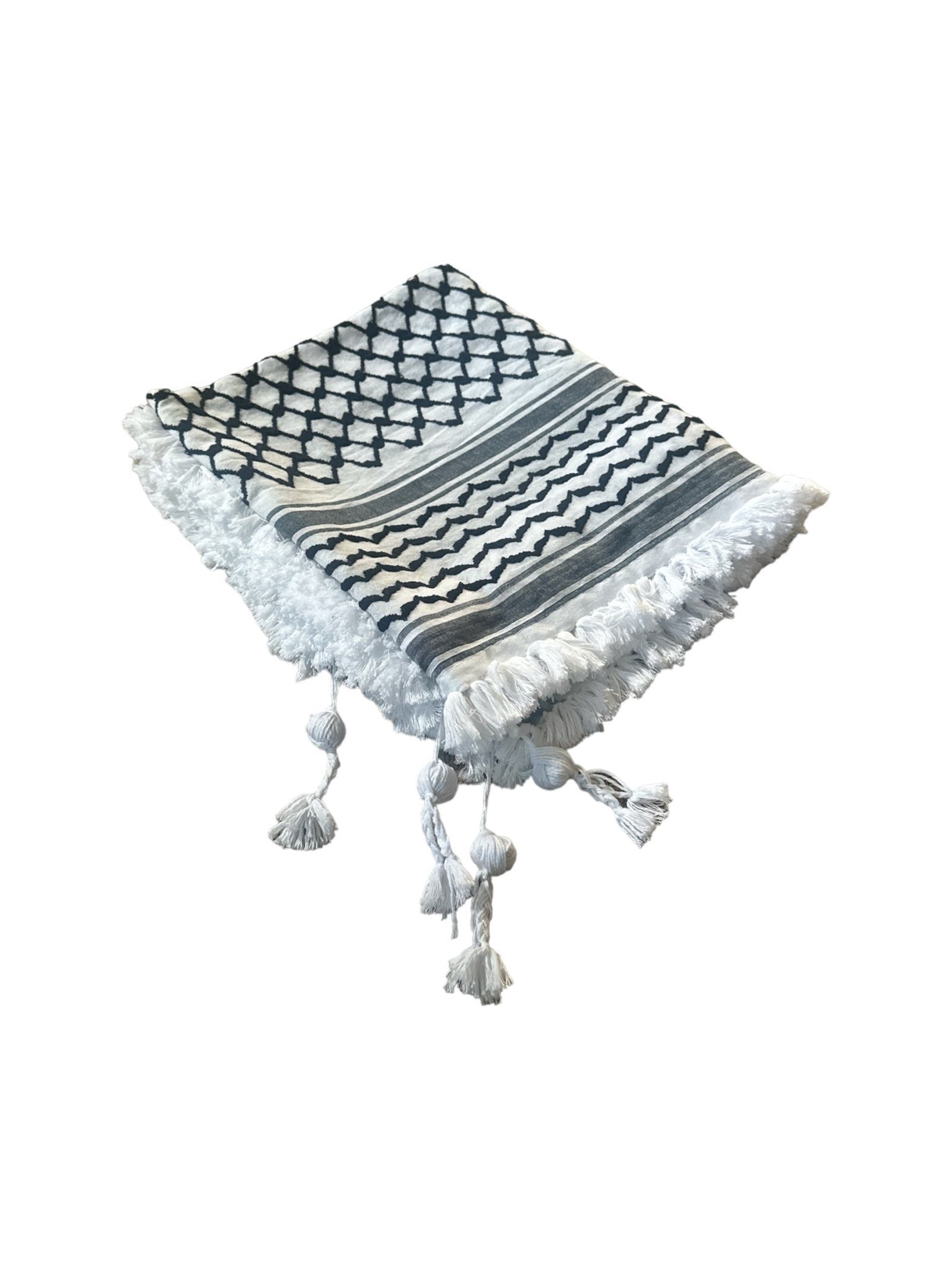 We proudly produce all of our keffiyehs in our family-owned keffiyeh factory currently operating in Amman, Jordan. Established by Jido Ahmed Al Bulbul in Jericho, Palestine in the 1950's, the factory was relocated after he was expelled from Palestine in 1967. The factory is now run by two of his children and produces a wide variety of keffiyehs amongst other textiles. Although our headquarters is based in North America, we recognize the importance of creating pieces authentically and through that, supporting the local Arab community.