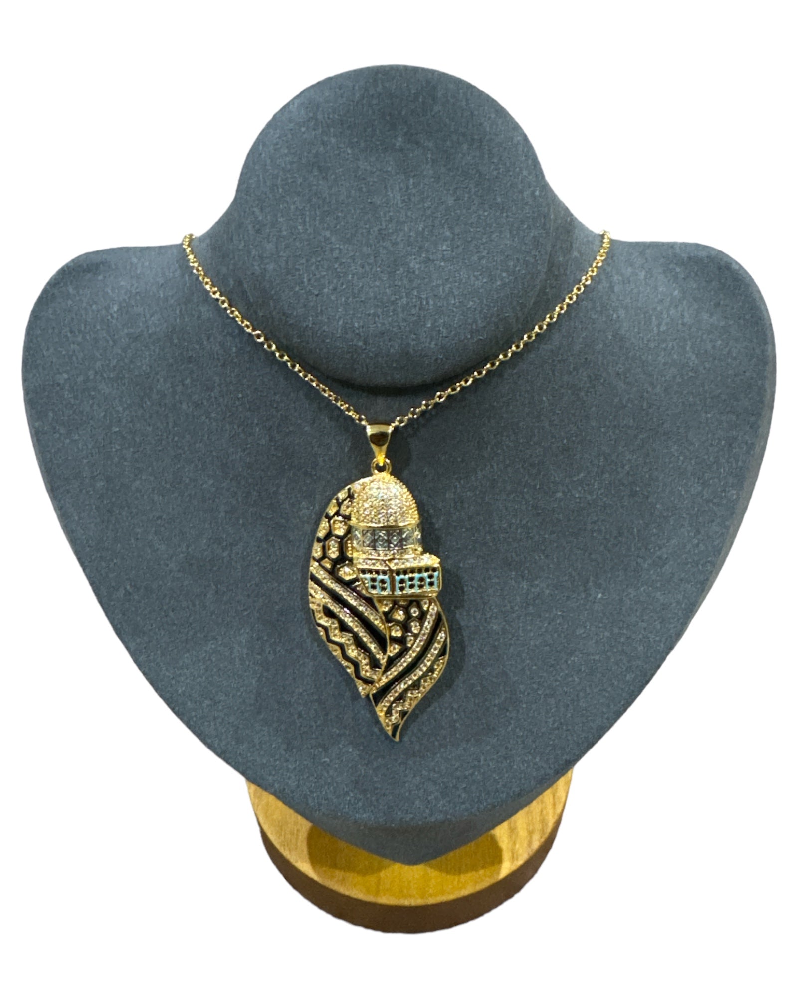 Iconic Representation: The Dome of the Rock, meticulously crafted in gold on the right side of the necklace, stands as a beacon of faith and history, inviting admiration and reflection.