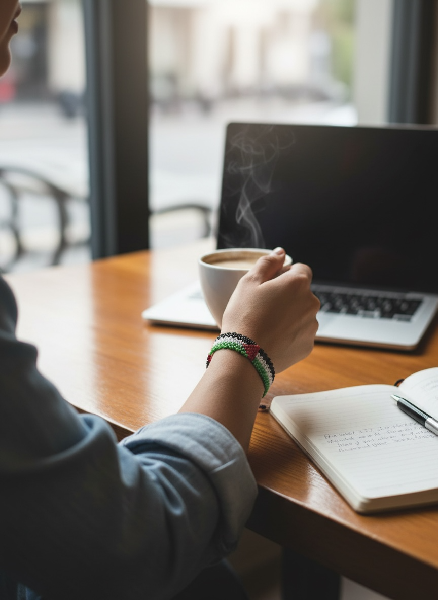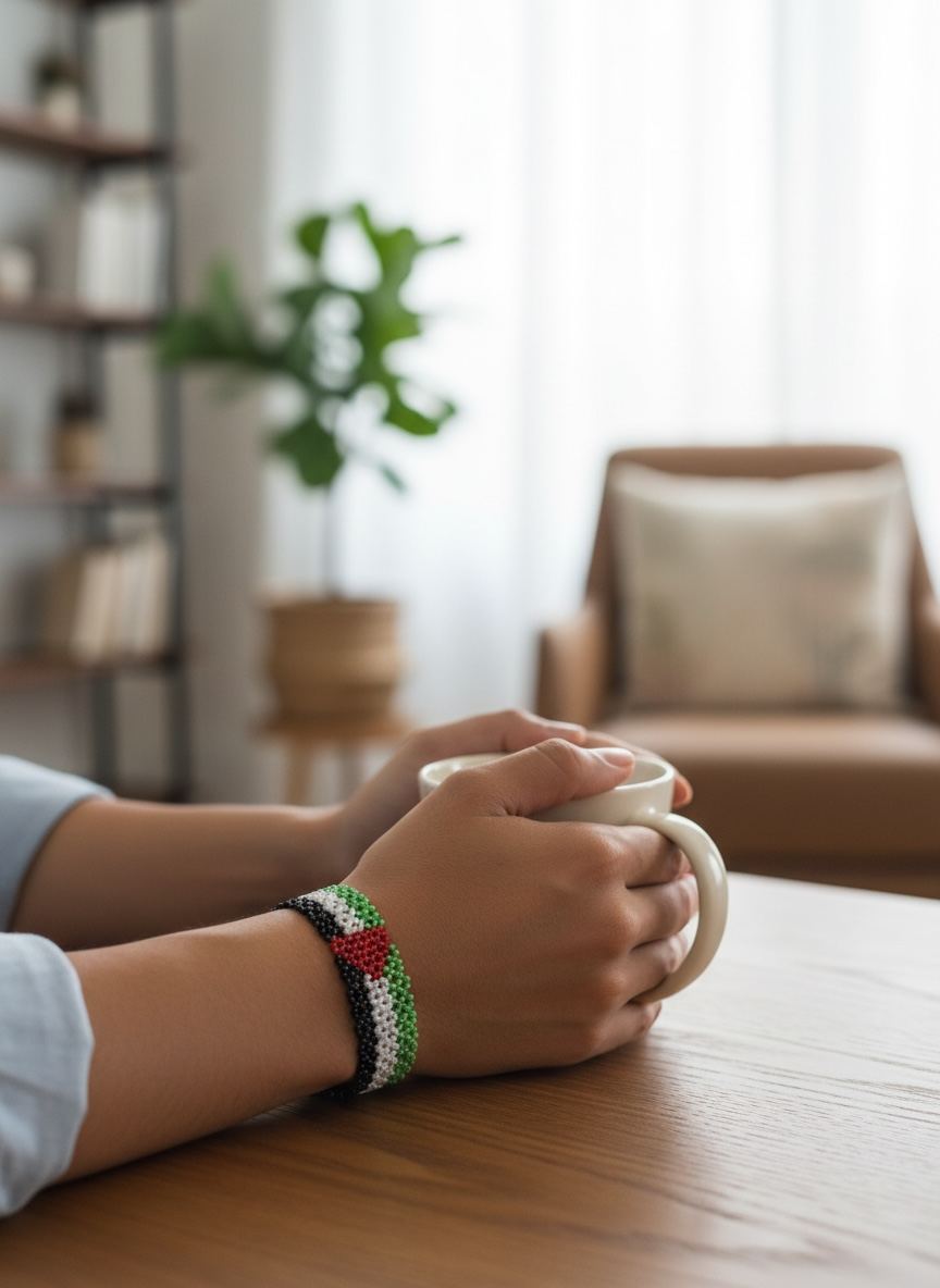 Designed with the iconic Palestinian flag colours, representing identity, unity, and heritage.